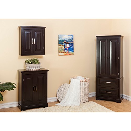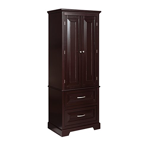 Make more room in your home for linen storage with this stately looking linen tower. Tall and imposing, this dark-finished cupboard features two drawers and two adjustable shelves hidden behind two doors, to provide ample storage for your sheets, towels and table linens. Place this sophisticate tower in your master bathroom or bedroom, where it blends well with both traditional and contemporary furnishings and fixtures. Constructed of MDF with an espresso finish and satin nickel knobs and drawer pulls, this piece is easy to care for by simply wiping it clean with a soft cloth and warm water * Made of MDF with a modern espresso finish and satin nickel knobs and drawer pulls for an elegant look * Two drawers, two adjustable shelves and two doors for lots of storage * Use it to store household items, making it a useful addition to a bar, bathroom, bedroom, dining room, kitchen, nursery or officeOverall dimensions measure 62"H x 24"W x 16"DCabinet measures 34"H x 24"W