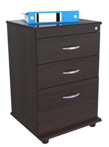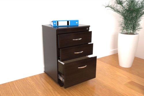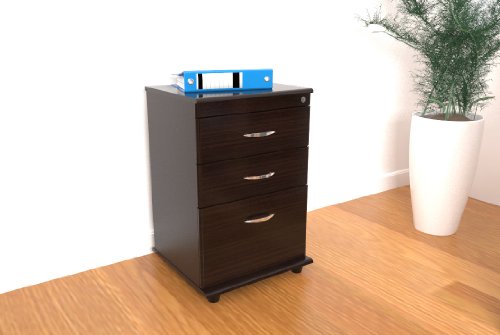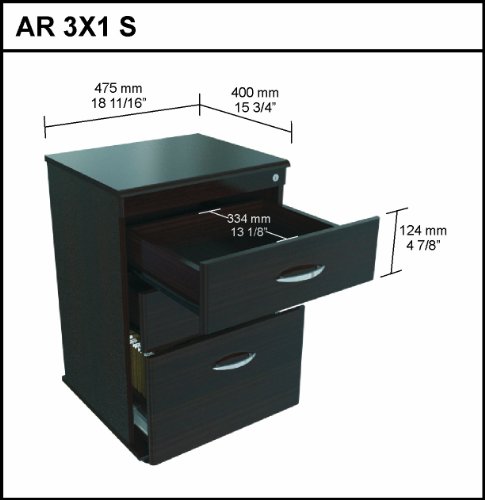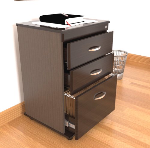 File Cabinet with 2 Accessory Drawers and 1 File Drawer - Functional modern design is an excellent choice for home or office. P2 engineered wood 5/8" boards, coming from well managed forests, double-faced laminated in durable Melamine which is stain, heat and scratch resistant in elegant Espresso-Wenge color. Plastic base gliders. Easy to assemble.Front edge of file and drawer front panels have soft-form edges.2 accessory drawers.