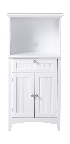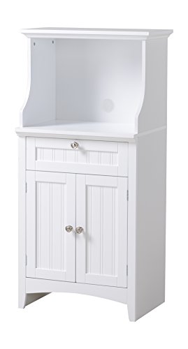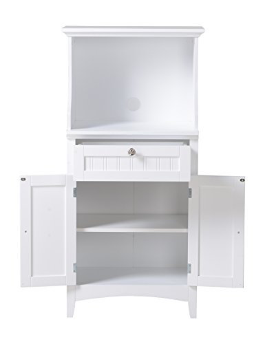 Free up valuable counter and cabinet space with this microwave, coffee maker, etc. kitchen organization station. The OS Home and Office Model 25503 white kitchen storage item features a spacious drawer and hidden storage behind two raised panel doors.Durable White Painted, Raised Panel, Vein Lined doorsSpacious drawer on high quality nylon and metal drawer guides
