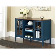 The 10 Spring Street Hinsdale 2-Door Console Cabinet features a curved, natural wood top and is painted with an attractive finish that blends well with most decors. It is designed with two enclosed cabinets with four tempered glass panels. The red console cabinet with center shelves is ideal for storing books, vases and more. Use this versatile piece in any room of your home. Mix and match it with other items in the Hinsdale Collection (sold separately) to create a theme that reflects your personal style. When you want to introduce a timeless look to the aesthetics of your living space, you'll find that this elegant item is an excellent choice.Curved, deep walnut top panel finishWood console cabinet with center shelves and painted deep teal body