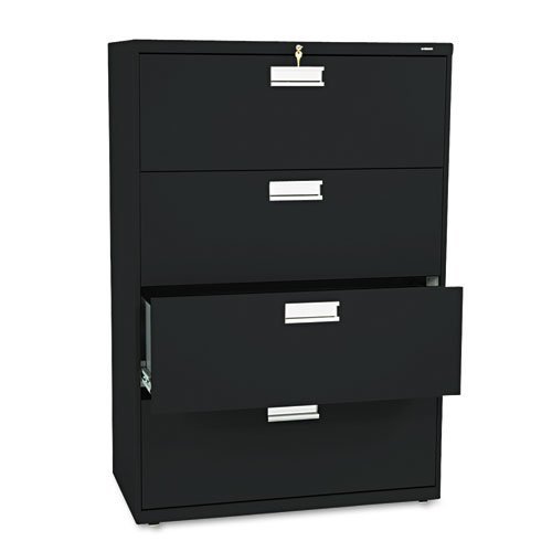 Three-part telescoping slide suspension Mechanical interlock allows only one drawer to open at a time to inhibit tipping Leveling glides adjust for uneven floors File Cabinet Type: Lateral; File Size Format: Legal; Letter; Media Stored: NA; Width: 42-InchThree-part telescoping slide suspensionMechanical interlock allows only one drawer to open at a time to inhibit tipping